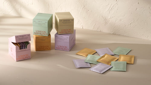 Our beautiful 12 sachet boxes come with a lovely copper-foiled sleeve and retail at £15.